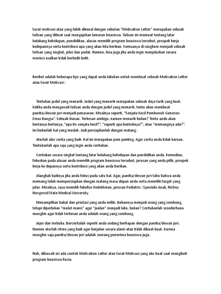 Contoh Motivation Letter Bahasa Indonesia Dan Inggris Yang Memikat