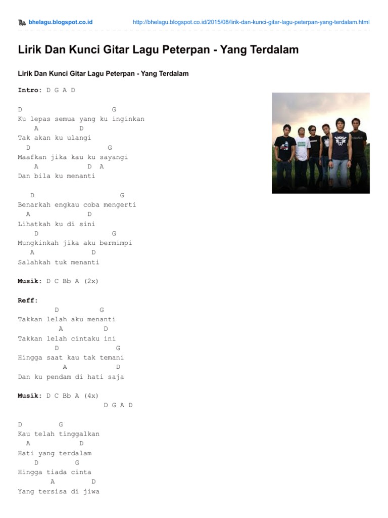 Bhelagu Blogspot Co Id Lirik Dan Kunci Gitar Lagu Peterpan Yang Terdalam